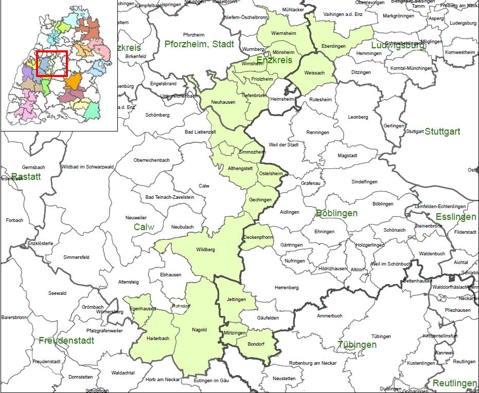 Das LEADER-Aktionsgebiet Heckengäu besteht aus 21 Städten und Gemeinden und liegt in den vier Landkreisen Böblingen, Calw, Enzkreis und Ludwigsburg. Im Fördergebiet leben rund 119.000 Einwohnerinnen und Einwohner auf einer Fläche von ca. 436 km². Verwaltungstechnisch ist es dem Regierungsbezirk Karlsruhe zugeordnet.